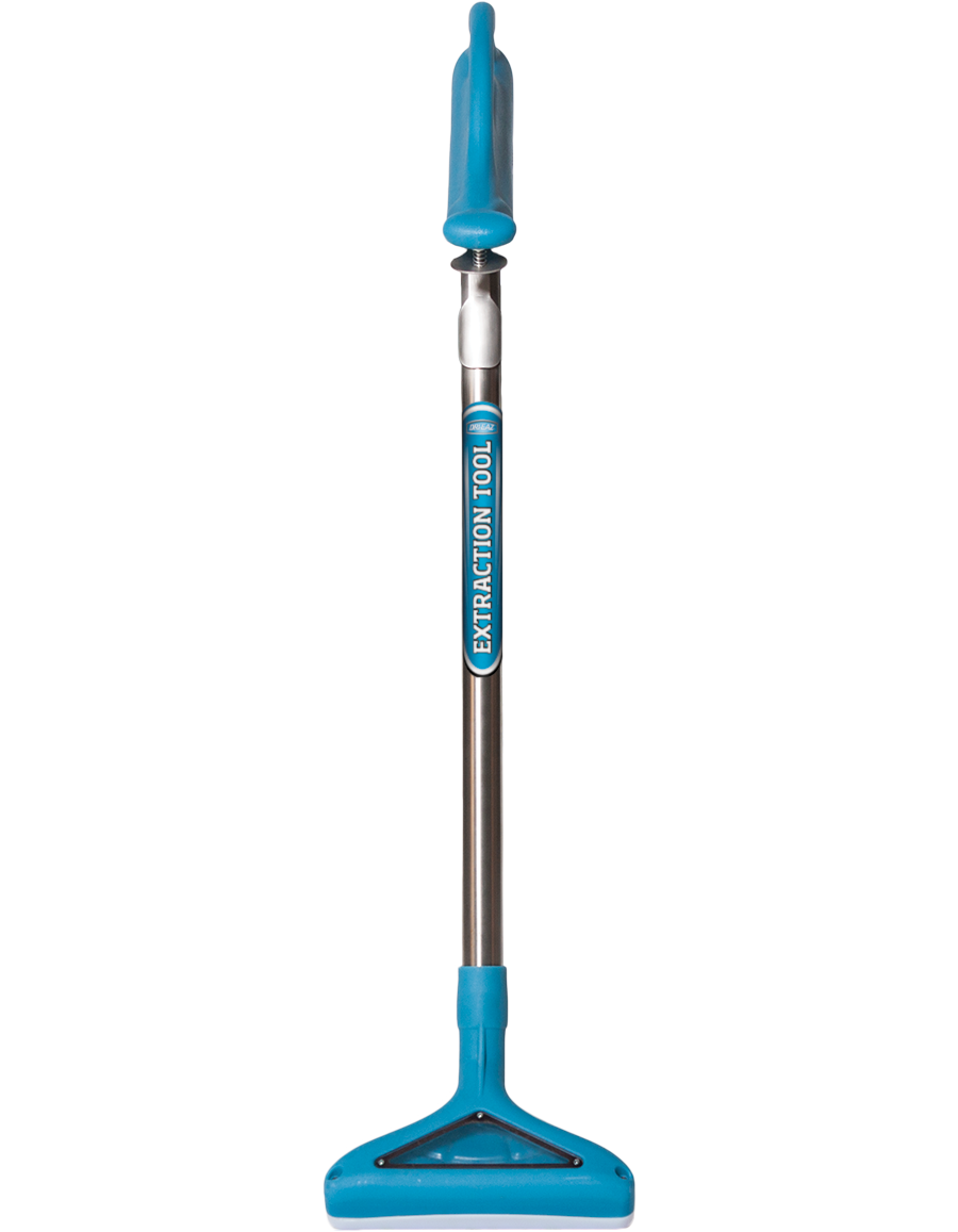 Our Extraction Tool significantly improves flood extraction efficiency. A patent-pending glide creates a powerful seal to maximize carpet compression and the 2-in. diameter tube maintains maximum airflow to ensure deep extraction from all carpet types. Cuts up to a third off extraction time with less strain on your back than traditional carpet wands.
